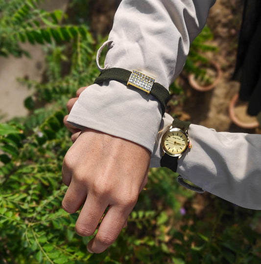 Mehndi Green Georgette Hijab + Watch + Bracelet + Gift Sett