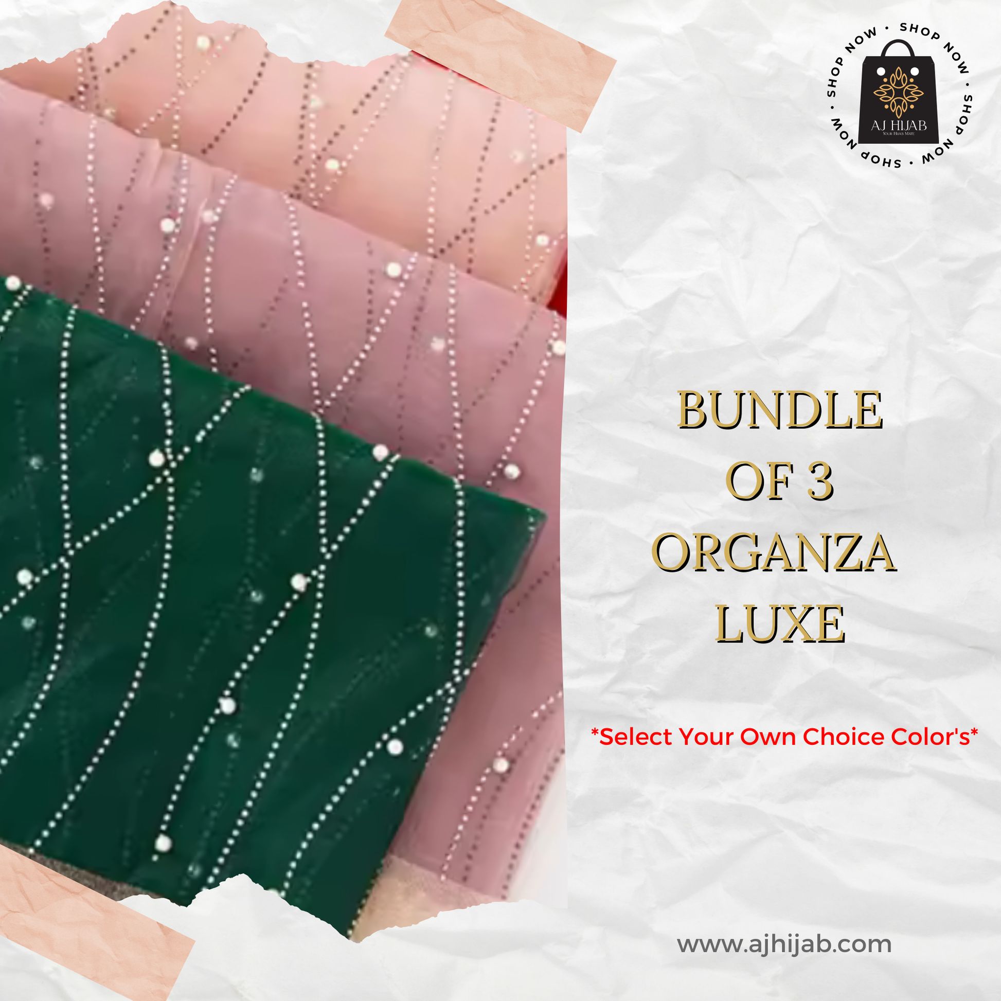 Bundle Of 3 - Organza Luxe Hijab (Select Colors)