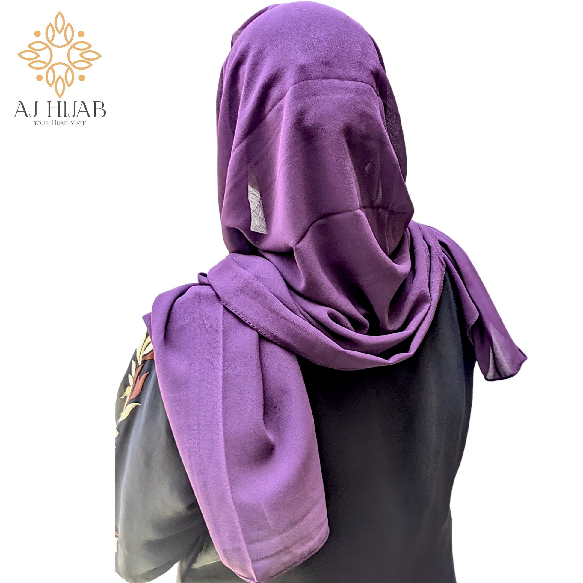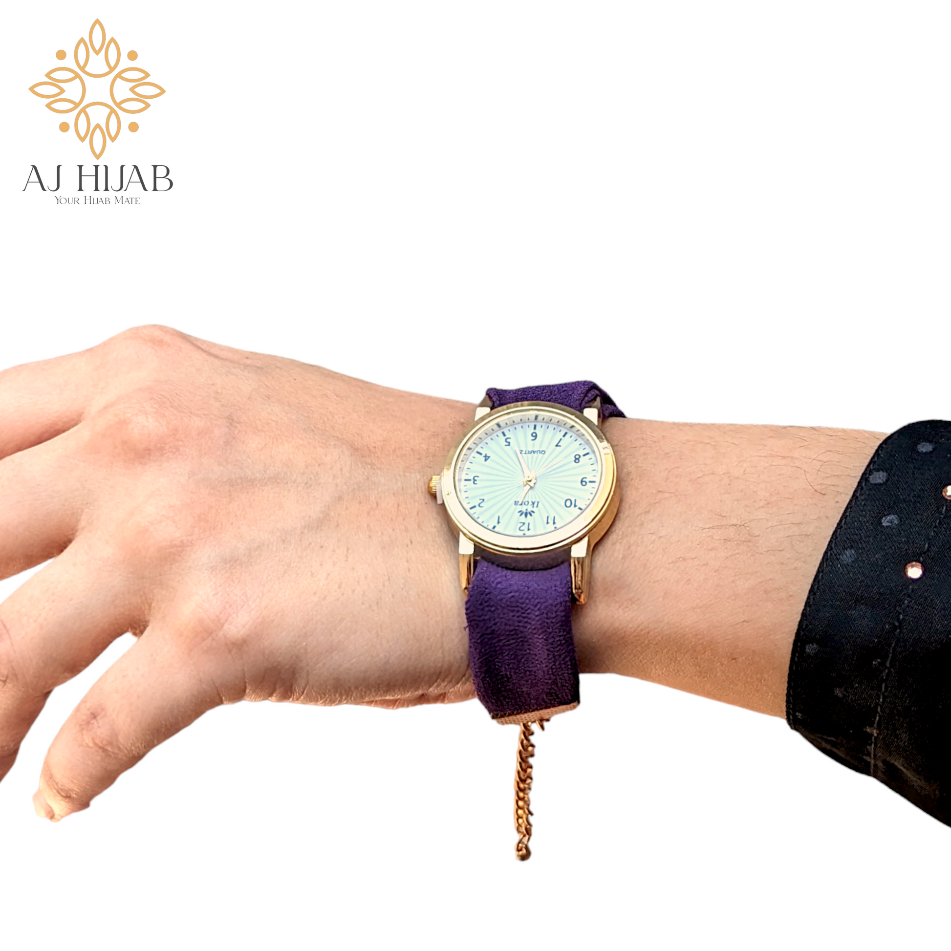 Purple Georgette Hijab + Watch + Bracelet + Gift Sett
