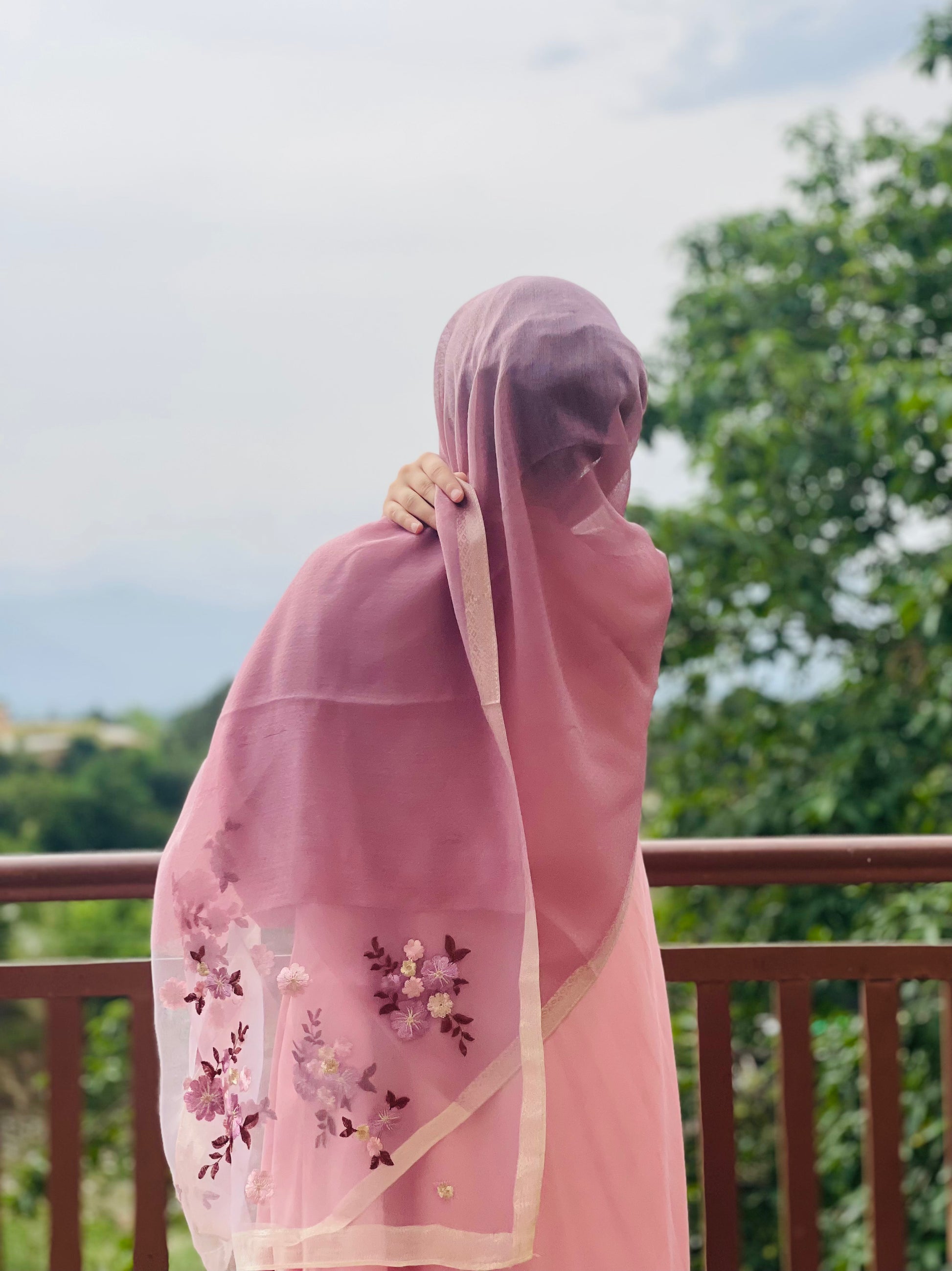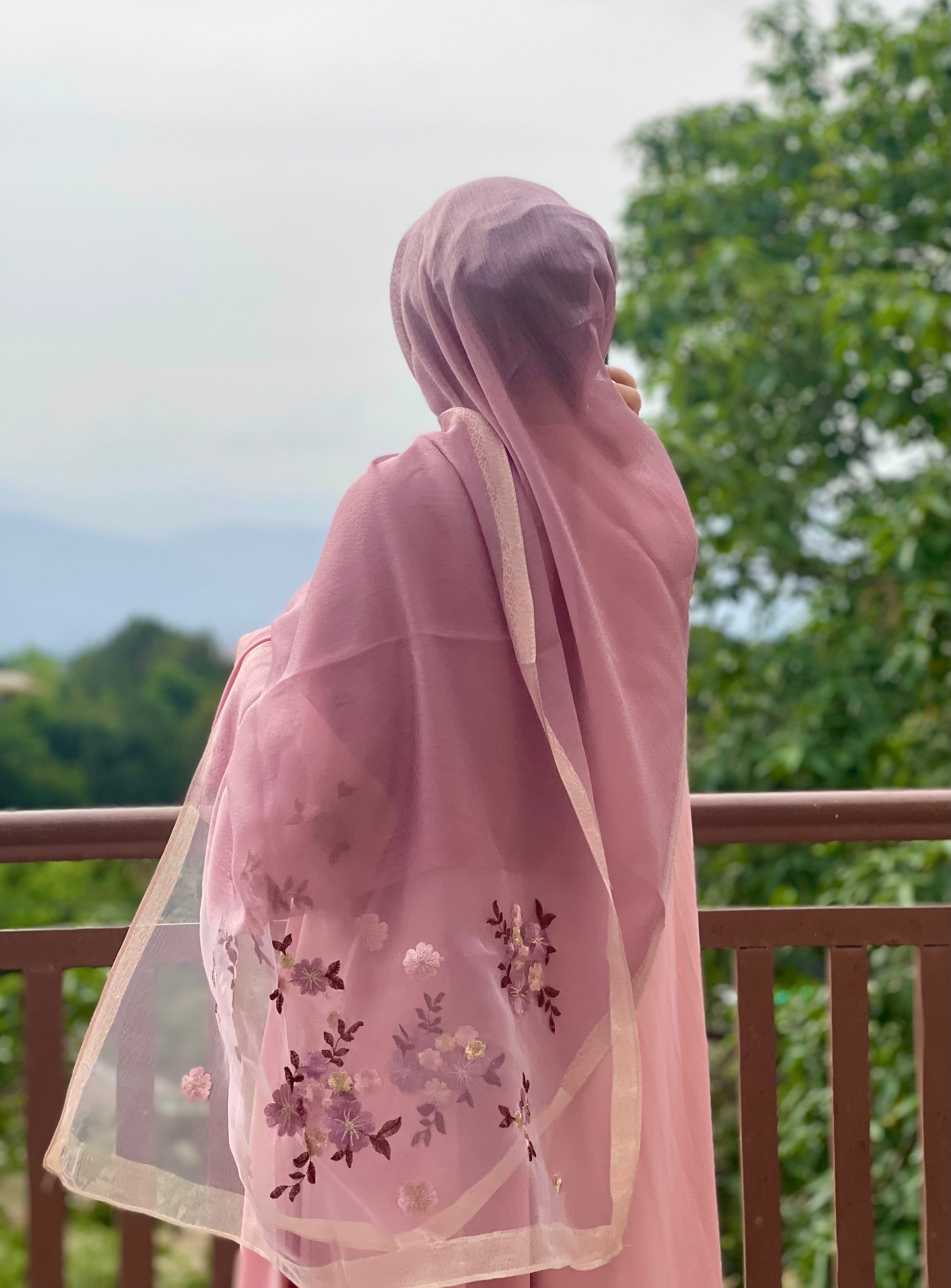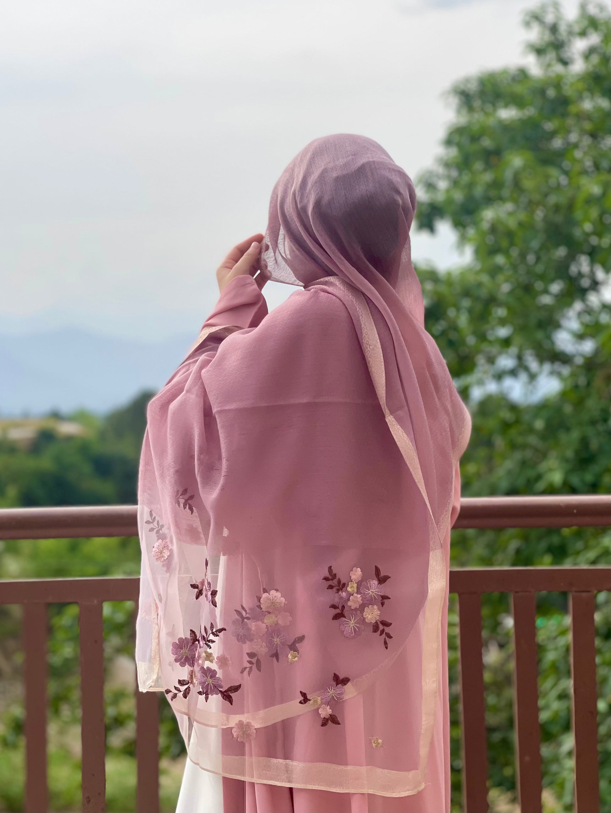 Organza Embroidery Hijab - Mauve