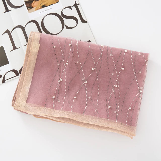 Organza luxe hijabs are perfect for Eid, parties, and formal events. Made from soft, silky Organza, they are lightweight and comfortable. The generous size offers full coverage, while the silver studs and pearl-embellished borders add a touch of elegance. Available in various colors, they effortlessly elevate any outfit.